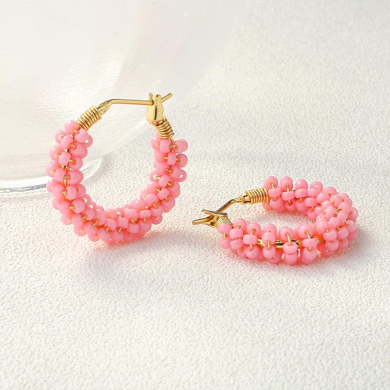 KELITCH Hoop Earrings Colorful Beaded Stud Earrings Round Small Drop Earrings for Women (Pink 04J)