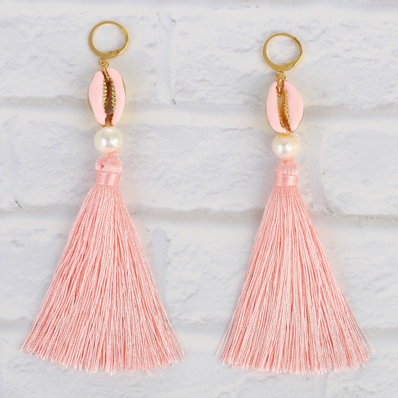 - Earring length: 4 inches, tassel length: 2.7 inches, shell pearl size: 8 mm, crystal size: 0.6 inches, lip metal bead size: 19 x 12 mm