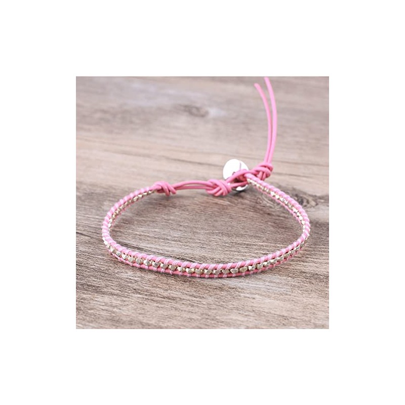 KELITCH New 925 Silver Beads Beaded Bracelets Bangle Color Leather Wrap Bracelets for Women Friendship Bracelet (Pink C)