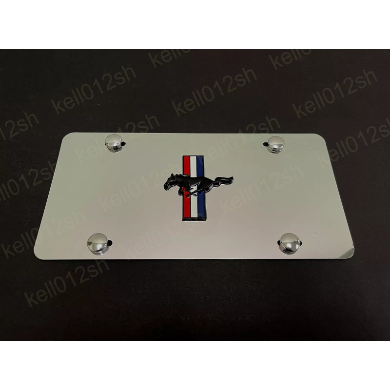 Kell012shop 1pc 3D Tri-Bar PONY Emblem Aluminum Mirrored Chrome FRONT License Plate-screwcap