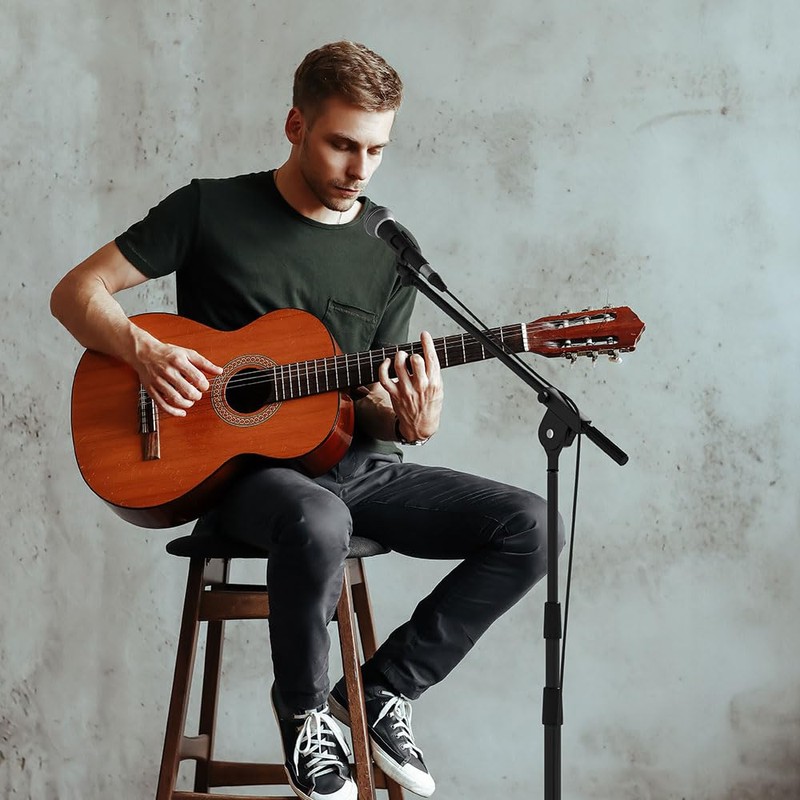 - Offers a boom arm with telescopic extension for versatile microphone placement