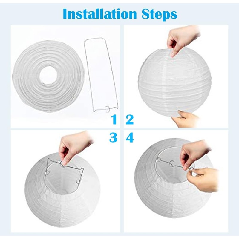 - Easy to Operate This paper lantern paper lantern is foldable, easy to install, easy to store and can be reused multiple times. Each hanging round paper lanterns has a sturdy metal bracket that can be hung anywhere.
