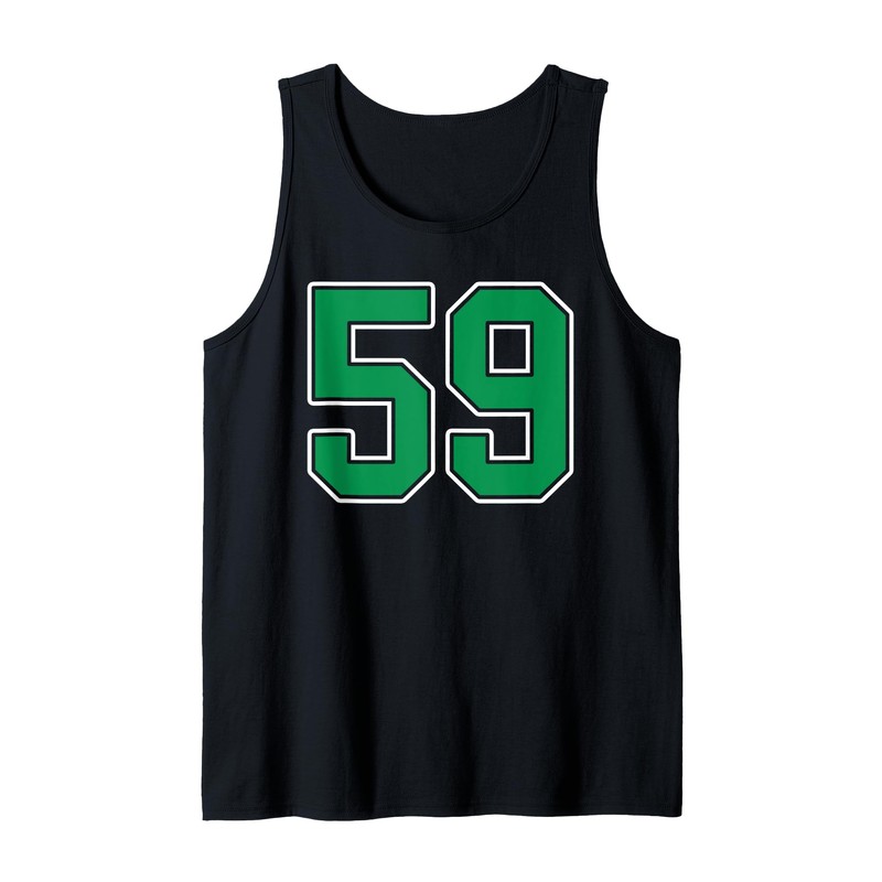 - Number 59 Jersey Player Uniform #59 fan who's favorite player. Great for the team sports mom, baseball, softball, football, basketball, volleyball, lacrosse, soccer or rugby number Jersey fan favorite. Sports Team Kelly Green White Jersey Numbered Shirt