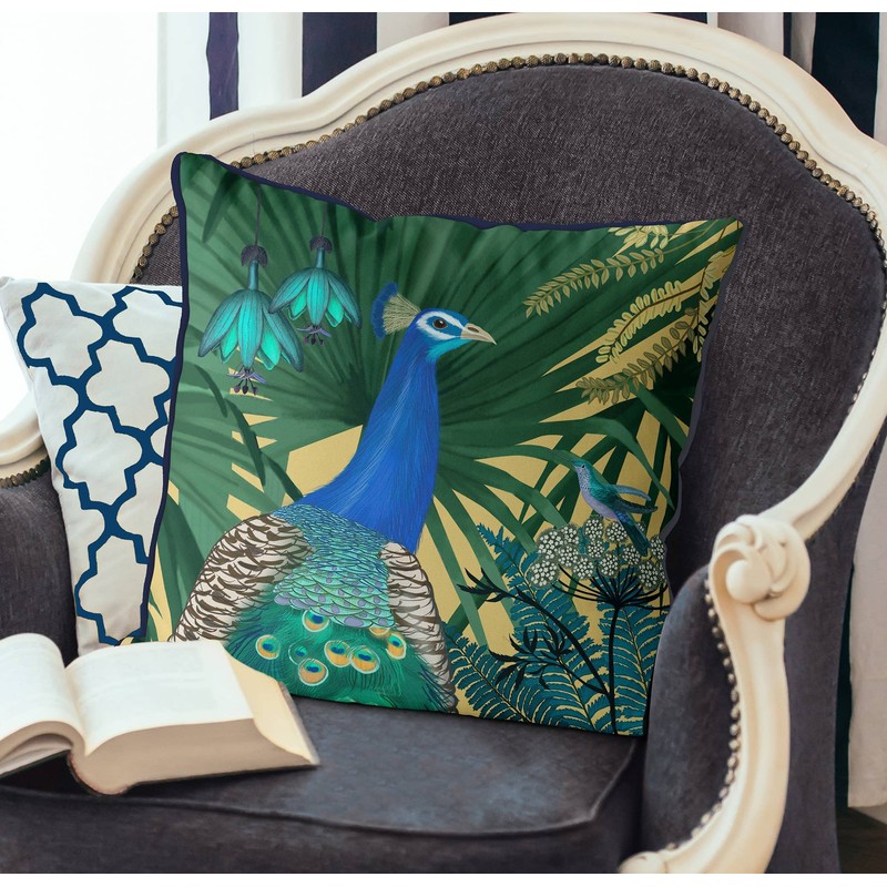 - From the Peacock Garden Collection. Full of exotic charm, this vibrant peacock garden cushion adds a beautiful touch of elegance.