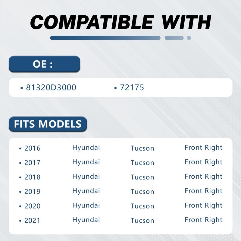 • [Reference Number]: 81320-D3000 81320D3010 72175. Please check the compatibility of your vehicle with our products before purchasing.