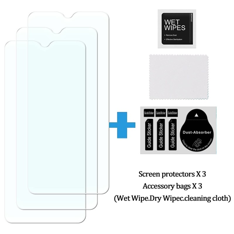 - Package list: 3 x screen protectors, 3 x microfibre cloths, 3 x wet wipes, 3 x dust removal stickers. Easy installation with (If bubbles occur, please lift the corner of the film close to the bubble with your fingernail until the air bubble is completely covered, and then push out the air bubble while putting on the protective film.)