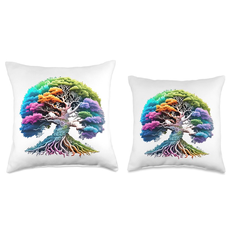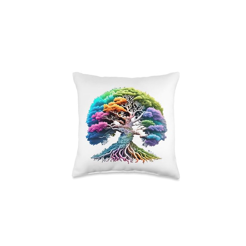 Keltischer Baum des Lebens Bunter Lebensbaum Tree of Life in Rainbow Colours Throw Pillow, 16x16, Multicolor