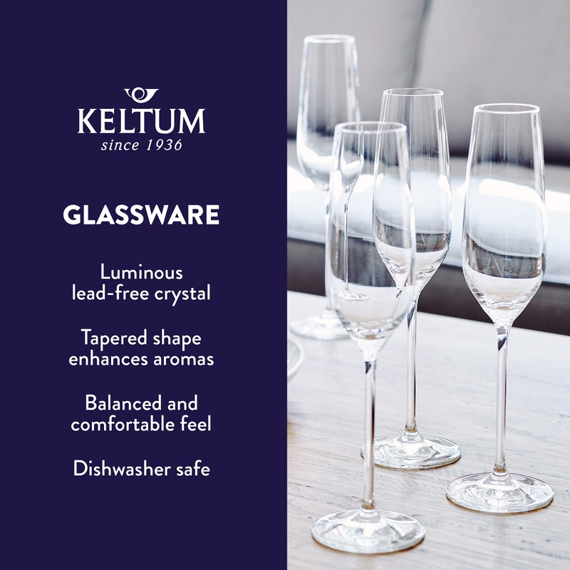 Keltum Lead-Free Crystal Champagne Flutes, Set of 2