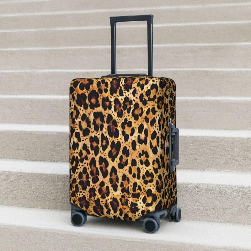 keluki Cheetah Leopard Brown Design Elastic Luggage Cover Protector Anti-Scratch Travel Essentials Suitcase Case Fits Size L for 25-28 inch Luggage