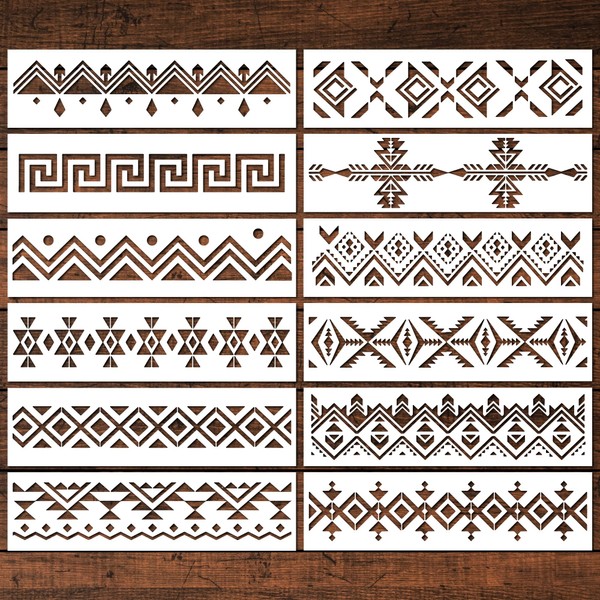 Keluna Aztec Stencils - 12 Pcs Boho Borders Pattern Stencils for DIY Wall & Wood Canvas Painting