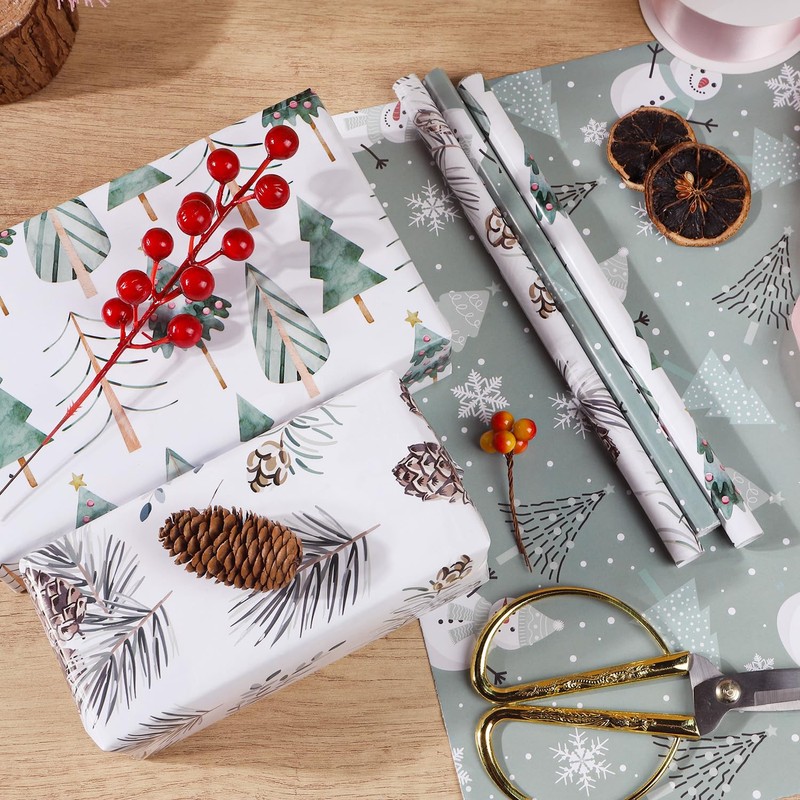 - Sage Green Christmas Wrapping Paper: This green Christmas wrapping paper set features 12 sheets of premium gift wrapping paper, showcasing delightful patterns including sage, reindeer, snowmen, Christmas trees, snowflakes, and pine cones to bring holiday cheer to your gifts