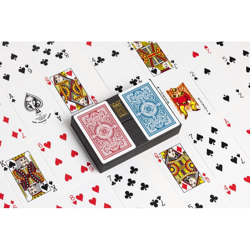 - NEW LUXURY PACKAGING, SAME ELITE PLAYING CARDS: These two decks of playing cards are featured in a new, premium paperboard gift box, providing easy storage or a display. KEM playing cards make a perfect gift or addition to a card game enthusiasts collection.