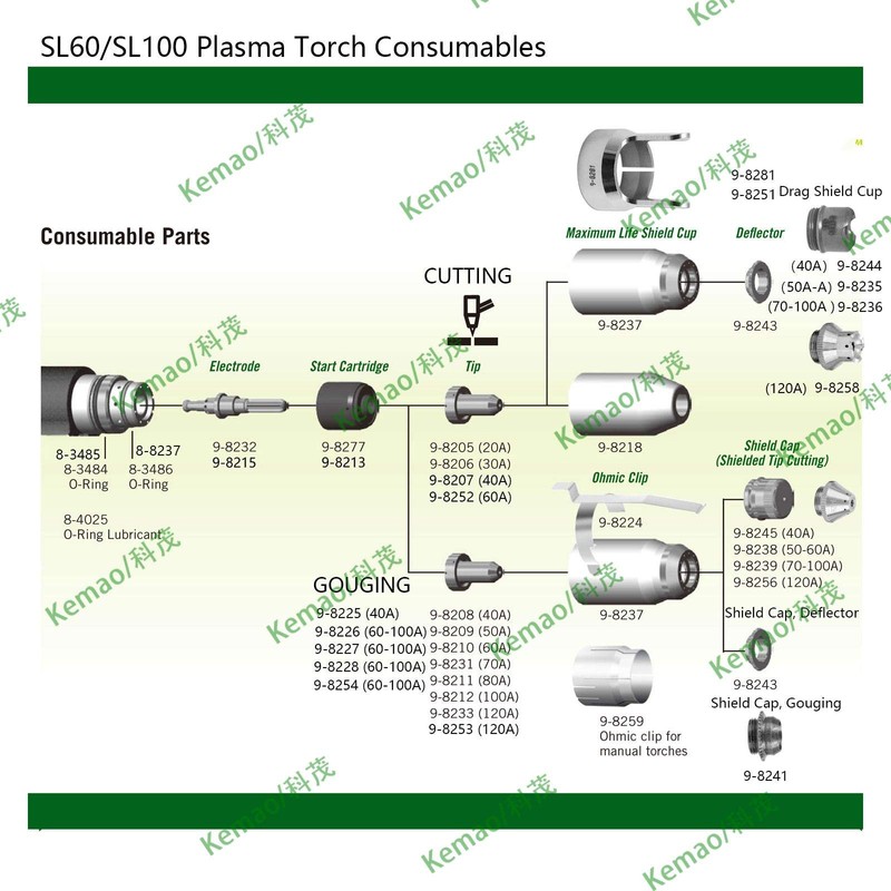 KEMAO 10Pcs 9-8215 Plasma Cutter Electrode & 10Pcs 9-8207 Plasma Cutter Nozzle Tips Fit for Thermal Dynamics SL60/SL100 Plasma Cutting Torch Consumables