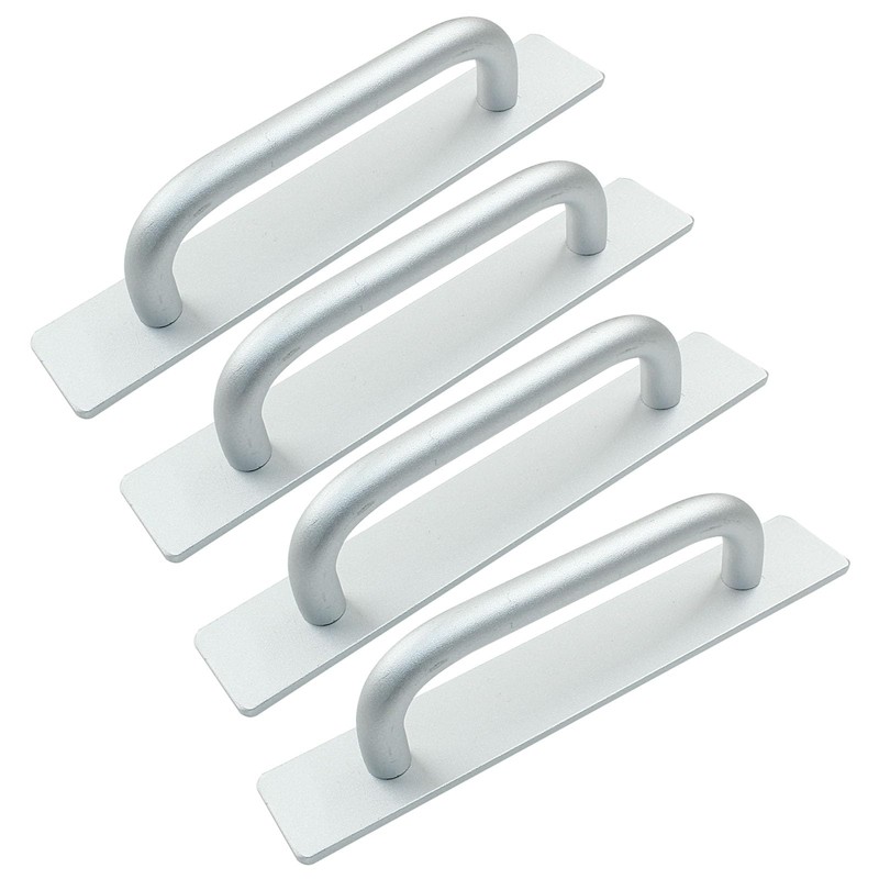 Kemcatui 4 Pack Adhesive Door Handles, Silver Aluminium Alloy Barn Door Handle Stick on Sliding Door Push Pull No Drilling for Cabinet, Drawer(5.8 Inch)