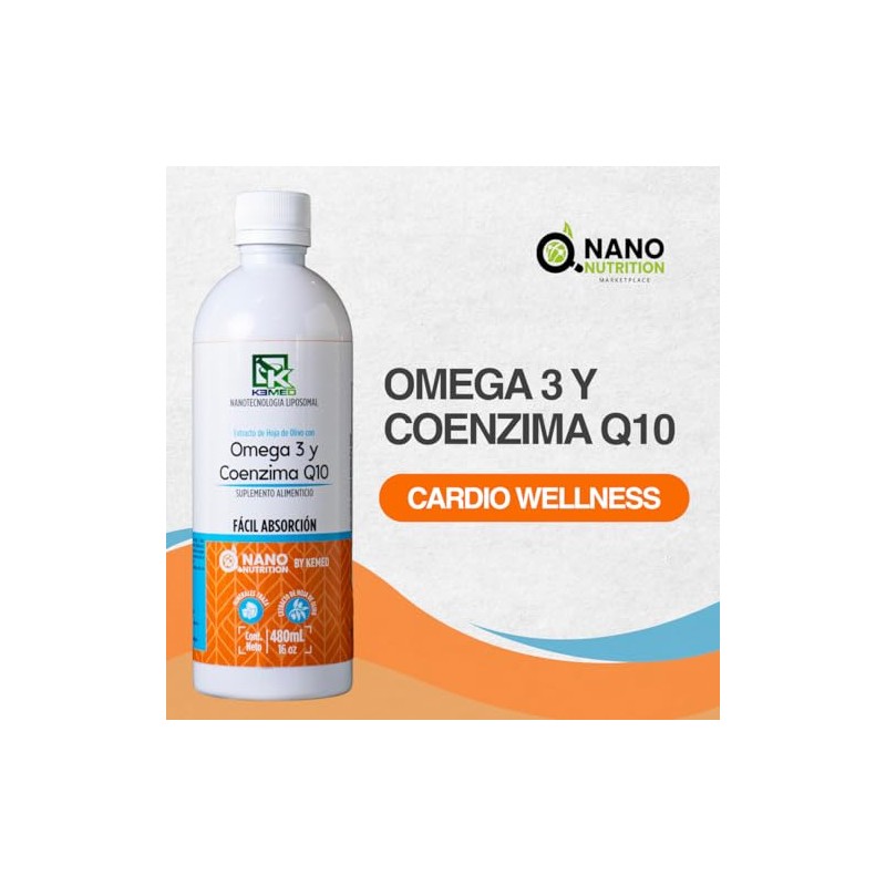 KEMED | Omega 3 Y Coenzima Q10 | Con Minerales Traza y Extracto de Hoja de Olivo | Nanotecnología Liposomal | Suplemento de Fácil Absorción 480 Ml | Nano Nutrition by Kemed 32 dosis