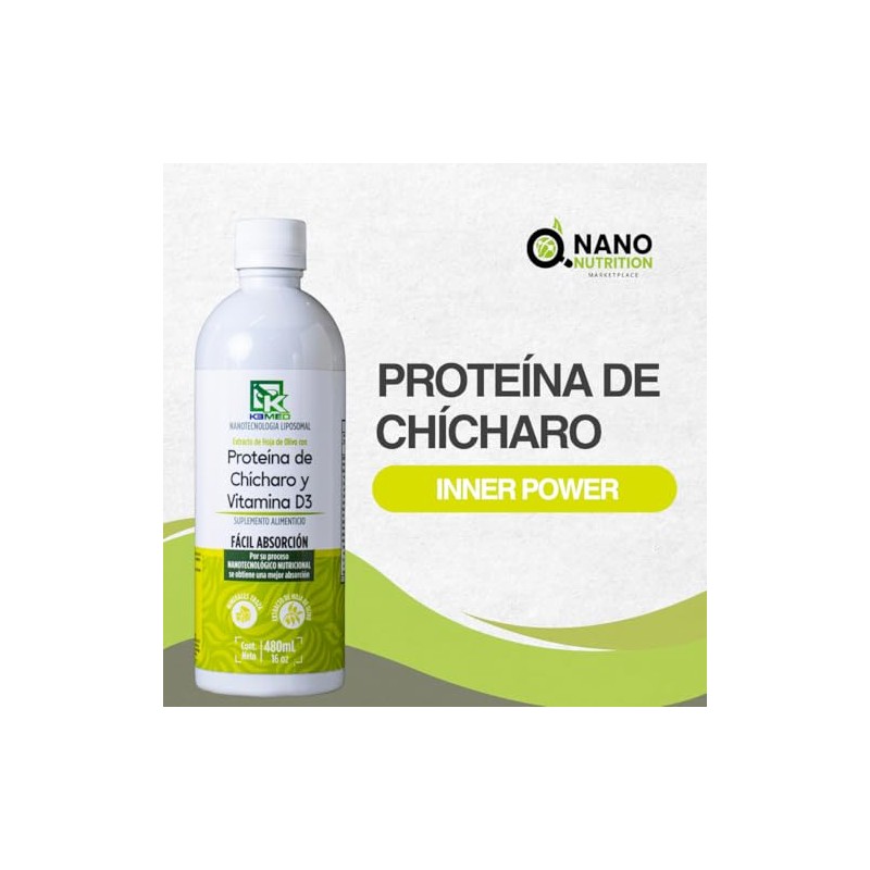 KEMED Protena de Chcharo y Vitamina D3 Suplemento de Alta Absorcin 480ml 32 Dosis Nano Nutrition by KEMED