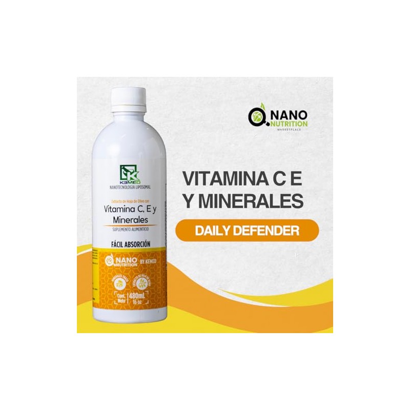 KEMED | Vitamina C, Vitamina E y Minerales con Extracto de Hoja de Olivo | Suplemento de Fácil Absorción 480 Ml | Nanotecnología Liposomal | Nano Nutrition by Kemed 96 dosis