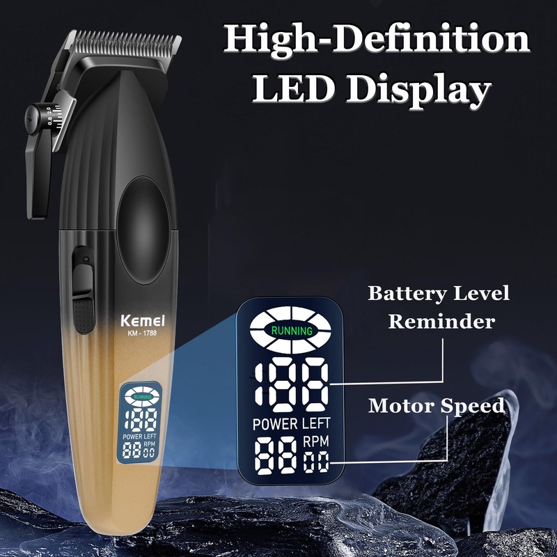 KEMEI 1788 Professional Hair Clippers for Men, Cordless Barber Clipper with LED Display, 9000 RPM Clippers for Hair Cutting with 2500 mAh Battery