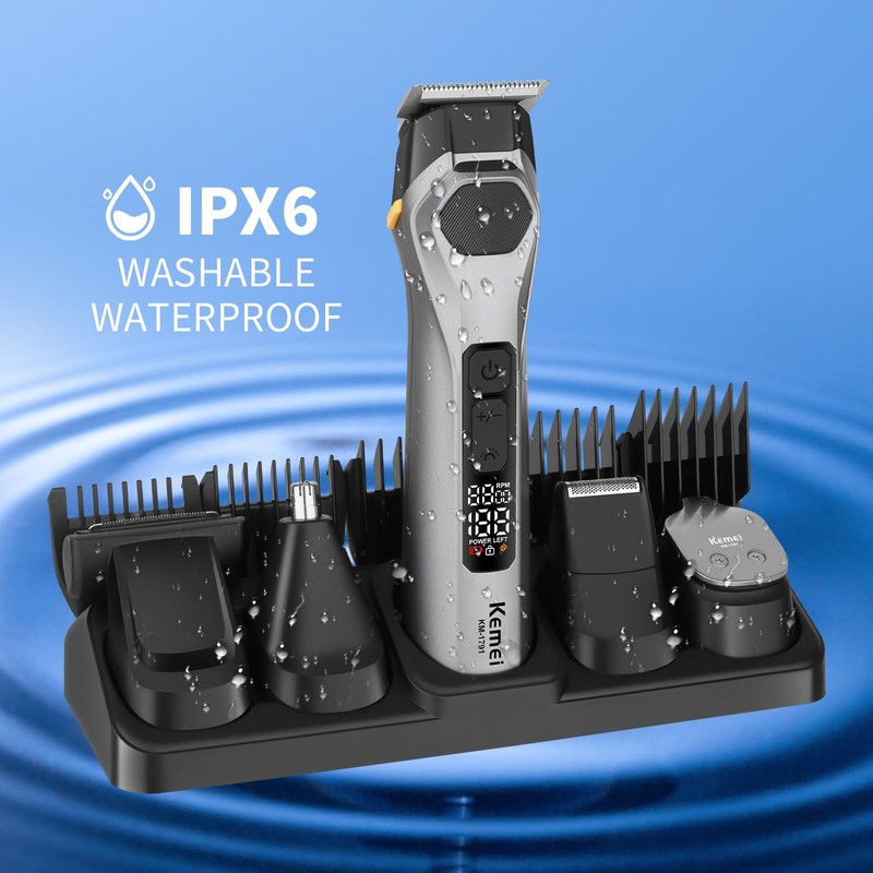 KEMEI KEMEI Professions Beard Trimmer for Men Cordless IPX6 Waterproof Mens Beard Trimmer for Night Lighting Lamp Rechargeable for Nose, Body, Face and Mustache with LED Display Gifts Mens KM-1791