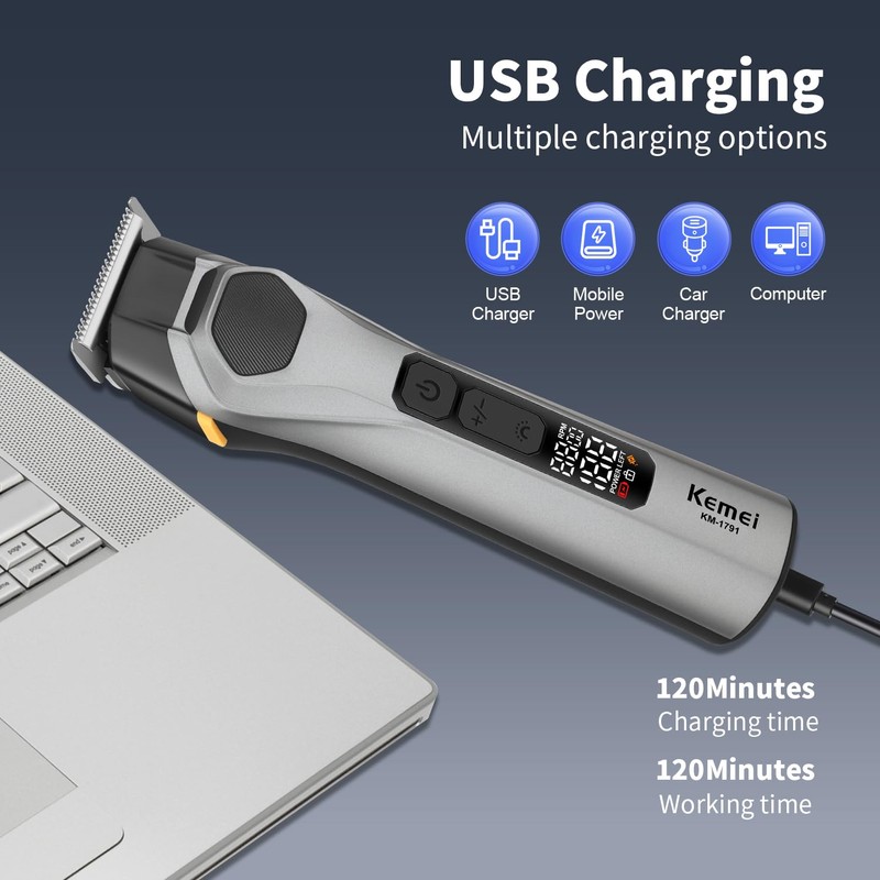 - 2 hours Fast Charging: cordless beard trimmer for men Rapid 2 hours Type-C charge fuels 120 minutes of cordless grooming. Type-C works with standard adapters Compatible with computers, USB charging cables, cars, and charging