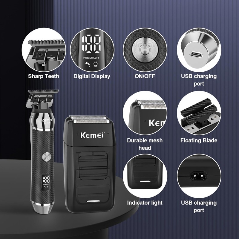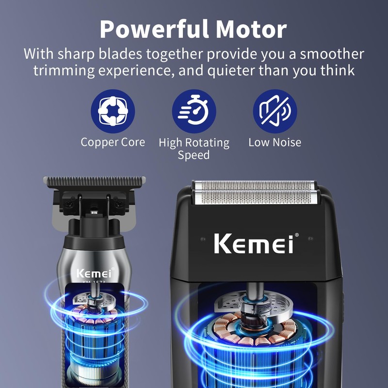 - 【Limit Guides & Excellent Blades】This KEMEI Shaver is equipped with Double Sharp Foil Blades. The blade net is designed to be lightweight thin, and fit snugly against the skin, making it ideal for dealing with dense, short, and thick hair or beard, The trimmer also comes with three additional combs (1mm, 2mm, 3mm, 4mm, 5mm), giving you more options.