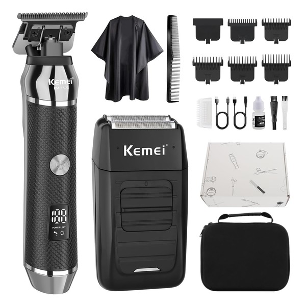 KEMEI Professional Beard Trimmer for Men, Electric Foil Shaver & Men's Facial Grooming Set, Cordless Bald Head Precision Trimmer, Rechargeable Foil Shaving Kit, Gifts for Men