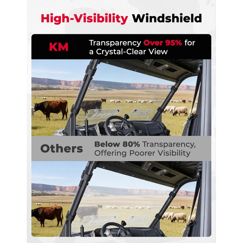 - Excellent Protection: The KEMIMOTO front windshield effectively keeps mud, dust, rain, wind, and snow out of your cab. The rubber seal helps minimize engine and road noise, allowing you to enjoy loud, immersive music from your in-cab speakers
