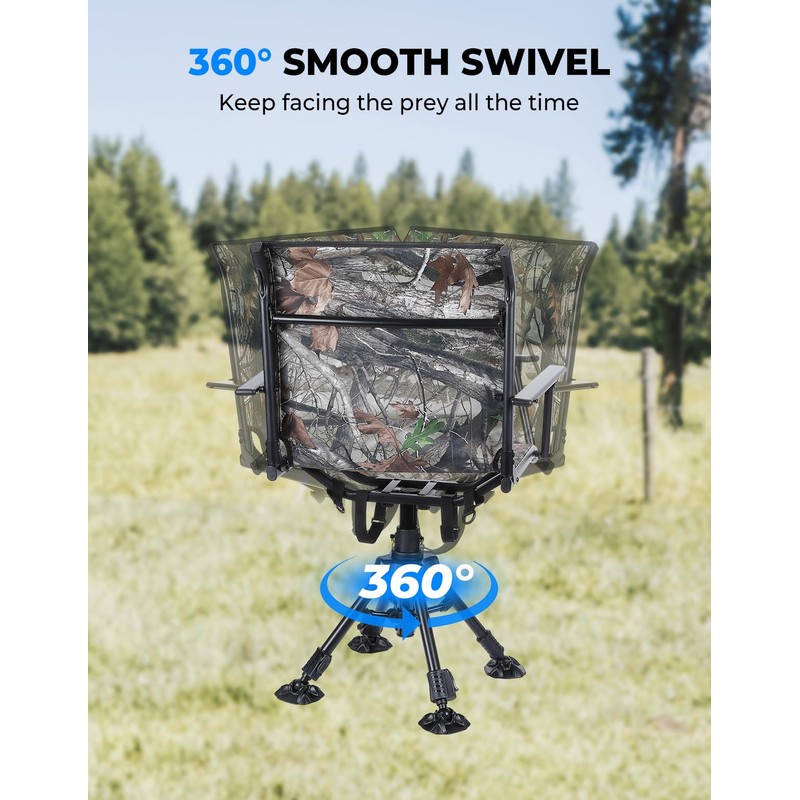 - 360-Degree silent rotation - The kemimoto full 360-Degree swivel chair features a noise-reducing design. You can spin and shoot game fast without making a sound! Perfect for hunting, camping, fishing or other outdoor sports.
