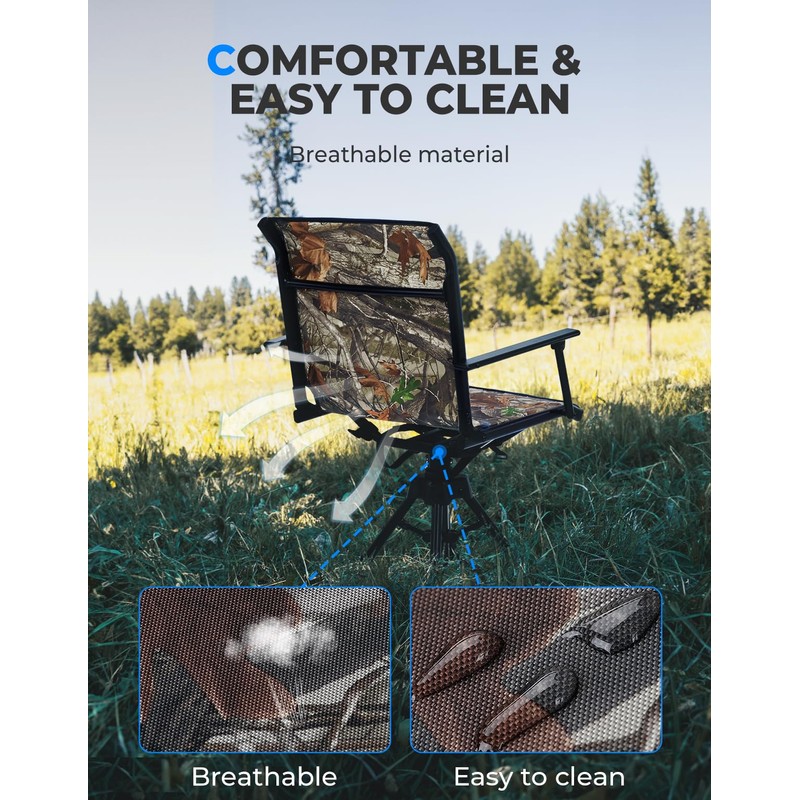 KEMIMOTO 360 Degree Silent Swivel Blind Hunting Chair, 320 Lbs Camo Height Adjustable Quick Folding Portable Comfortable Hunting Deer Fishing Ground Chair