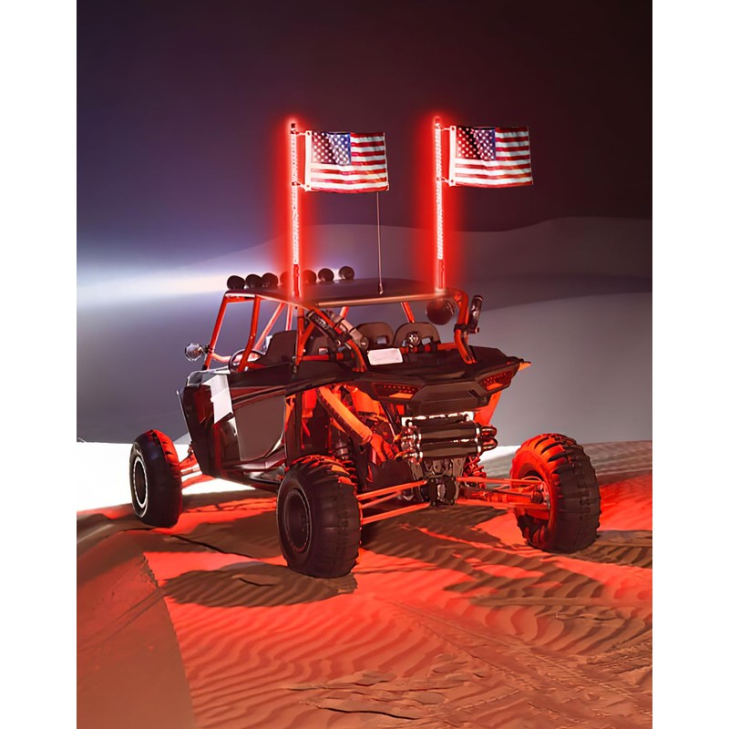 - You Will Get: Two 3ft KEMIMOTO Whip Lights and 4 Pod Rock Lights, 4 Pcs Rubber Pads, 2 USA Flags, RF Remote Control, Flag Mounting Hardware, Installation Instructions and Other Mounting Accessories