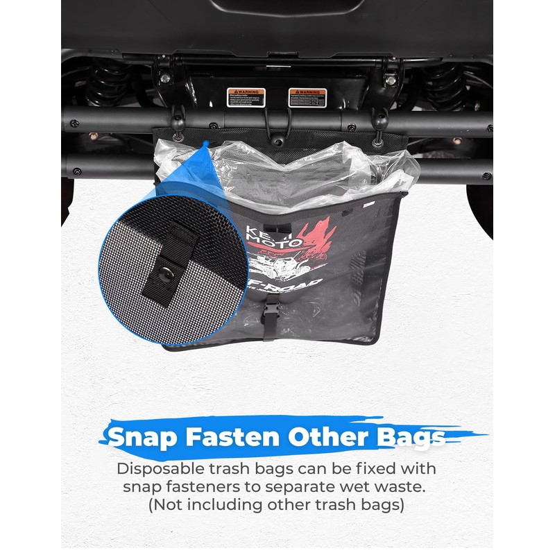 • Universal Fit: With a universal design, our KEMIMOTO UTV Mesh Trash Bag fits a broad array of UTVs and ATVs. Whether you have a side-by-side UTV or an ATV, this bag can be easily attached to various tubes, making it a crucial accessory for any outdoor enthusiast. Eliminate clutter and ensure a tidy, organized ride
