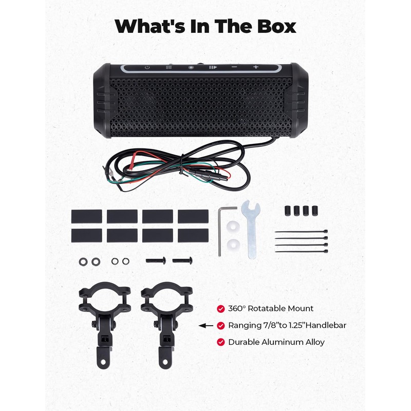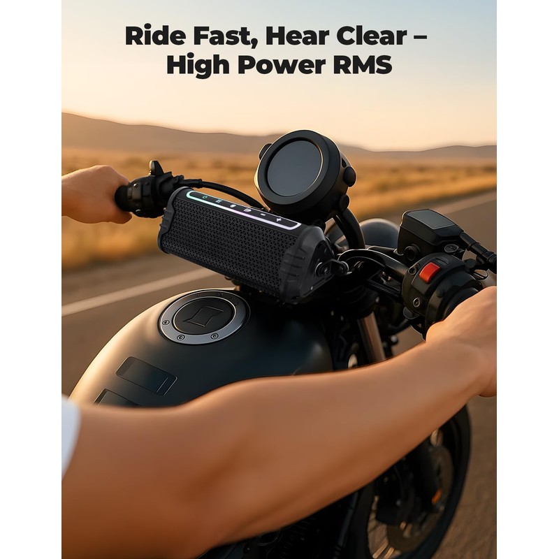 - High Output - Experience crystal-clear sound with an RMS power rating of 25W and peak power up to 50W. Designed for those who crave loud and high-quality audio, even at high speeds, roaring highways, dusty trails, night rides, or group adventures—your pulse to every two-wheel journey.