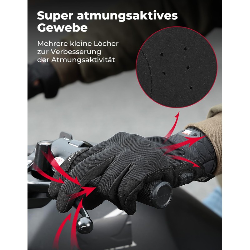 Hergestellt aus atmungsaktivem Material, halten diese Handschuhe Ihre Hände auch bei langen Fahrten kühl und bequem. Egal, ob Sie Motorrad fahren, Rad fahren, wandern oder campen – die KEMIMOTO Handschuhe sind vielseitig einsetzbar und ein unverzichtbarer Begleiter für alle Outdoor-Abenteuer.