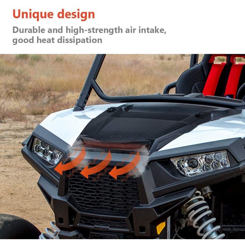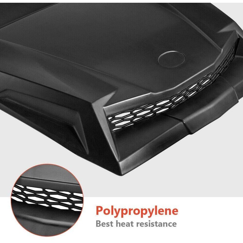- Lightweight and Durable - This hood scoop is made of high-quality ABS material, which is non-flammable, corrosion-resistant, impact-resistant, lightweight, and has high strength. The lightweight hood scoop will not slow down your UTV's driving speed, and its excellent impact resistance can withstand the impact of sand and rocks, ensuring durability for any type of riding or racing.