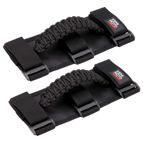 KEMIMOTO UTV Grab Handles, Handles Heavy Duty Nylon UTV Hand Grips Fit 1.5-2 inches Roll Bar Compatible with Polaris RZR, Can-Am X3, Kawasaki Mule Teryx, Talon, Wildcat, CFMoto Zforce, 2 PCS Black
