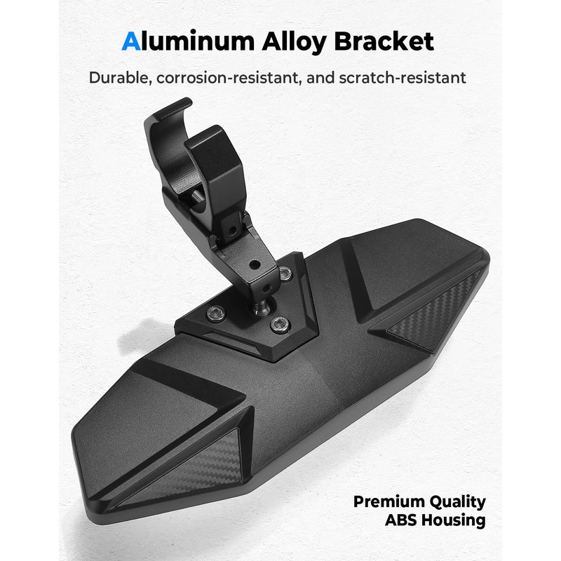 - More Sturdy and Durable: UTV Center Mirror with Side View Mirror Kit housing is made of ABS material, which is more durable and impact-resistant than regular plastic. The mirror bracket is made of aluminum alloy, which is more resistant to corrosion and suitable for all weather conditions, and less easy to break, even when crossing high mountains and deserts
