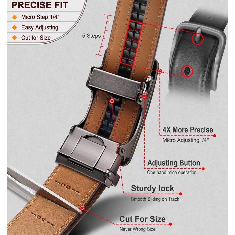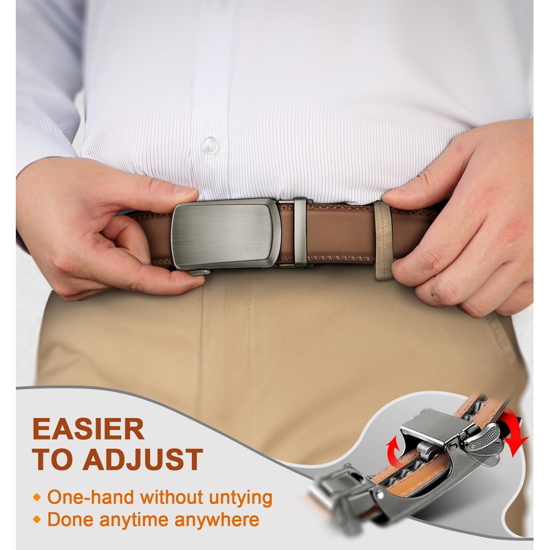 - EASY ADJUSTMENT--Equipped with a unique ratchet buckle design,our belt can be effortlessly adjusted with one hand. No need to unbuckle,exude style and confidence anytime,anywhere;