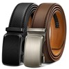 KEMISANT Men Belt 2 Pack, Leather Ratchet Belt Easy Click Slide For Men 1 3/8",Cut for Fit(Black/Tawny,30"-36" Waist Adjustable)