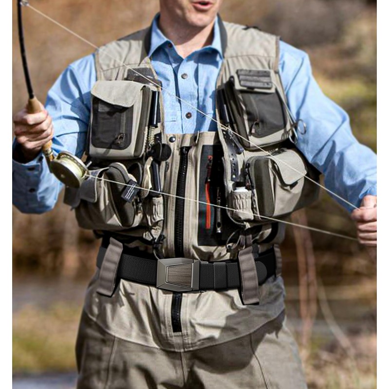 - EASY ADJUSTABLE -- This Kemisant outdoor belt features a stepless sliding-adjustable design to get any desired tightness for perfect fit,and the creative pull-pushing mechanism on buckle makes the adjusting effortless,simply pulling the tail of the strap outwards to release the buckle's grip and push it back down to secure again after adjusting,so easy even with just one hand;