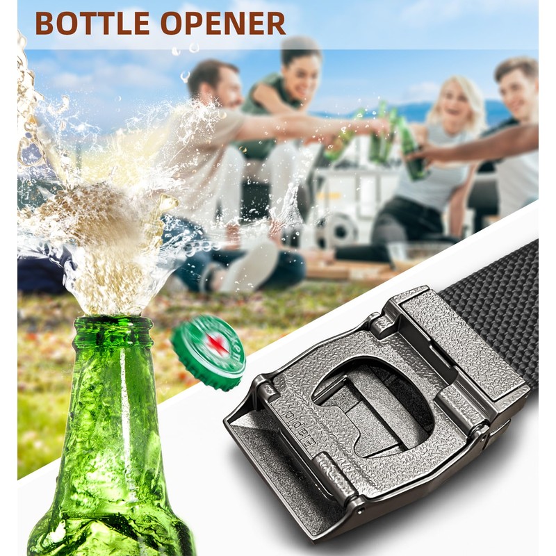 - EXTRA-FUNCTION -- Beyond a belt,It is installed with a bottle opener on the back of buckle,which enable you having a beer easier in necessary,enjoying the fresh outerlife;