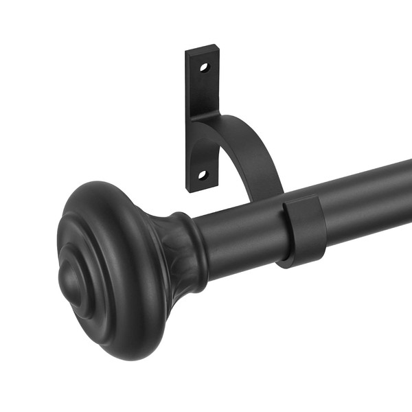 Kemmie 1" Window Treatment Curtain Rod with Decorative Pattern Urn Finials, Adjustable Length 72-144", Black