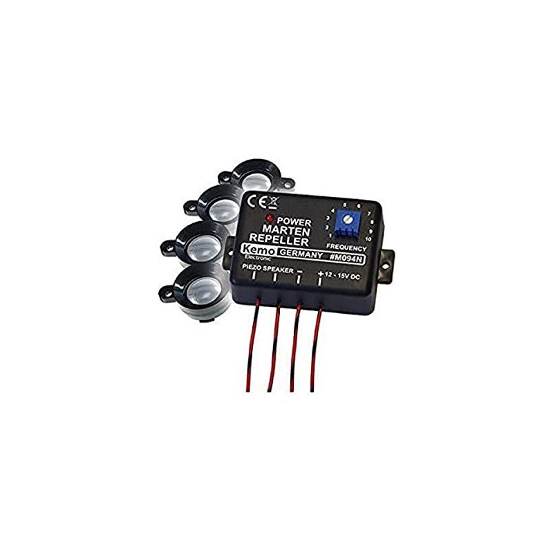 Kemo M094N Marten Stopper Repels Marten and Other Rodents with Powerful Pulsating Ultrasonic Sounds. With 4 Speakers. For Driving Out of Engine Compartment Pantry Basement Attic