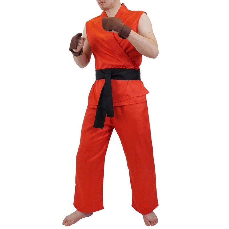 Ken Masters Costume | Keikogi Fancy Dress for Street Fighter Fans | Orange | Size: S