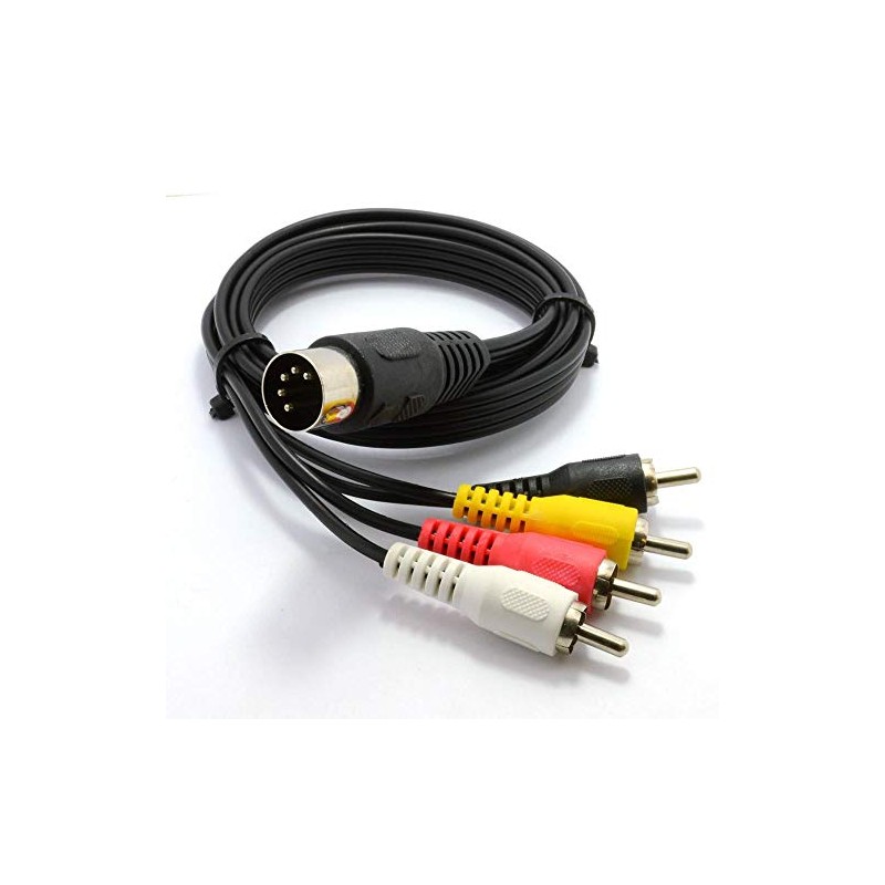 5-pin DIN plug wired 1 + 4 + 5 + 3 to 4 x RCA plugs. RCA Phono connections 5 Pin DIN AV Audio Cable Going clockwise on the image the pin connections are: PIN 1 = BLACK PIN 2 = RED PIN 3 = GROUND PIN 4 = YELLOW PIN 5 = WHITE