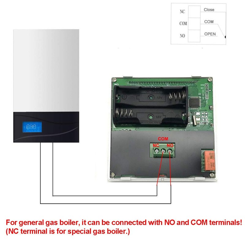 10. When the actual room temperature is higher than the temperature you set, the thermostat will control the boiler to stop working.
