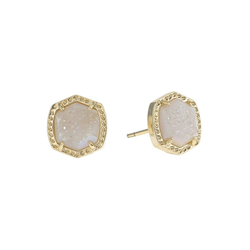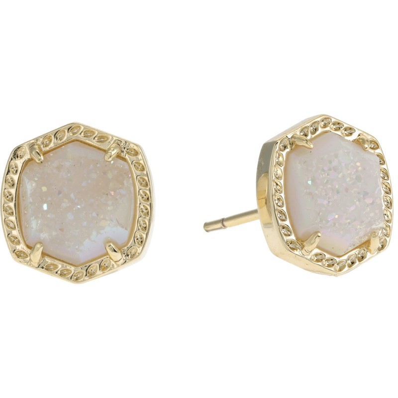 Kendra Scott Davie Stud Earrings Gold Iridescent Drusy One Size