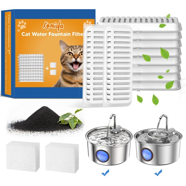 Kenida Pet Water Fountain Filters, Compatible with Kenida 8L/270oz Stainless Steel Dog Water Fountain,10 Filters with 2 Sponges Replacement Set, Multi-Filtration System