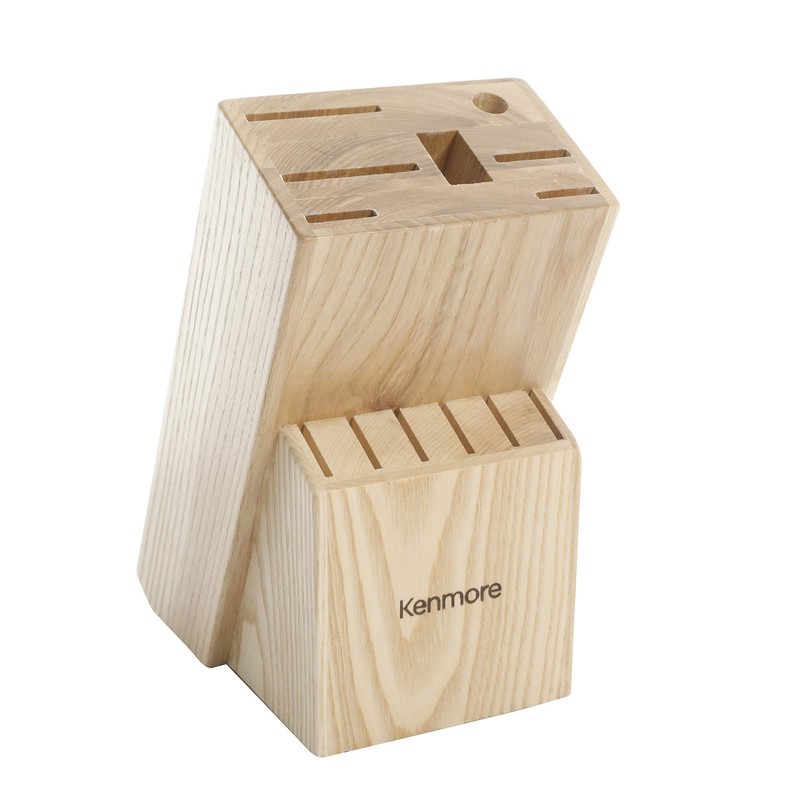 The Kenmore Kane 14-Piece Stainless Steel Knife Set includes all the essential cutting tools every home cook needs for everyday meal prep. The set features an all-purpose chef knife, paring knife, santoku knife, utility knife, bread knife, a pair of kitchen scissors, sharpening steel, and a sturdy wooden block for convenient storage and display on any countertop.These precision-stamped knives deliver razor-sharp cutswhether slicing meat, finely mincing garlic, or evenly dicing carrotsmeeting the demands of your favorite recipes. Their full-tang construction ensures balanced weight distribution for improved control and effortless slicing. Triple-riveted handles provide a strong, secure grip, making them perfect for frequent food prep and effortless cutting.Experience cutting-edge performance with the Kenmore Kane 14-Piece Stainless Steel Knife Set. Designed for both veteran chefs and home cooks looking to elevate their culinary skills, this cutlery set performs under pressure and delivers delicious results every day.