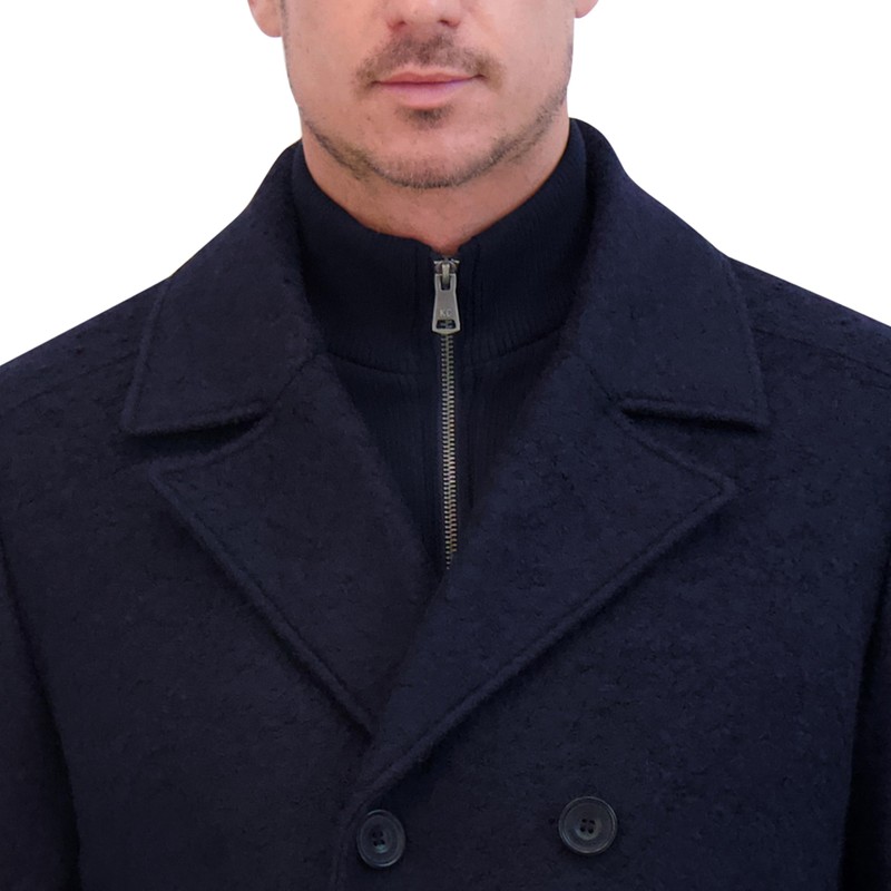 - Features: db classic boucle wool peacoat w/ zip front rib knit bib