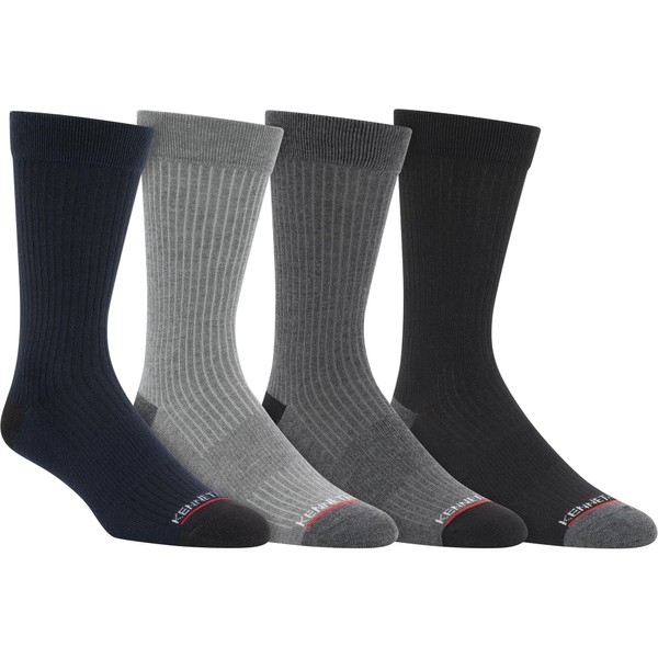 Kenneth Cole Mens Dress Socks Classic Comfortable Breathable Moisture Wicking Assorted Pattern Easy Care Crew 4 Pair Pack, Blue